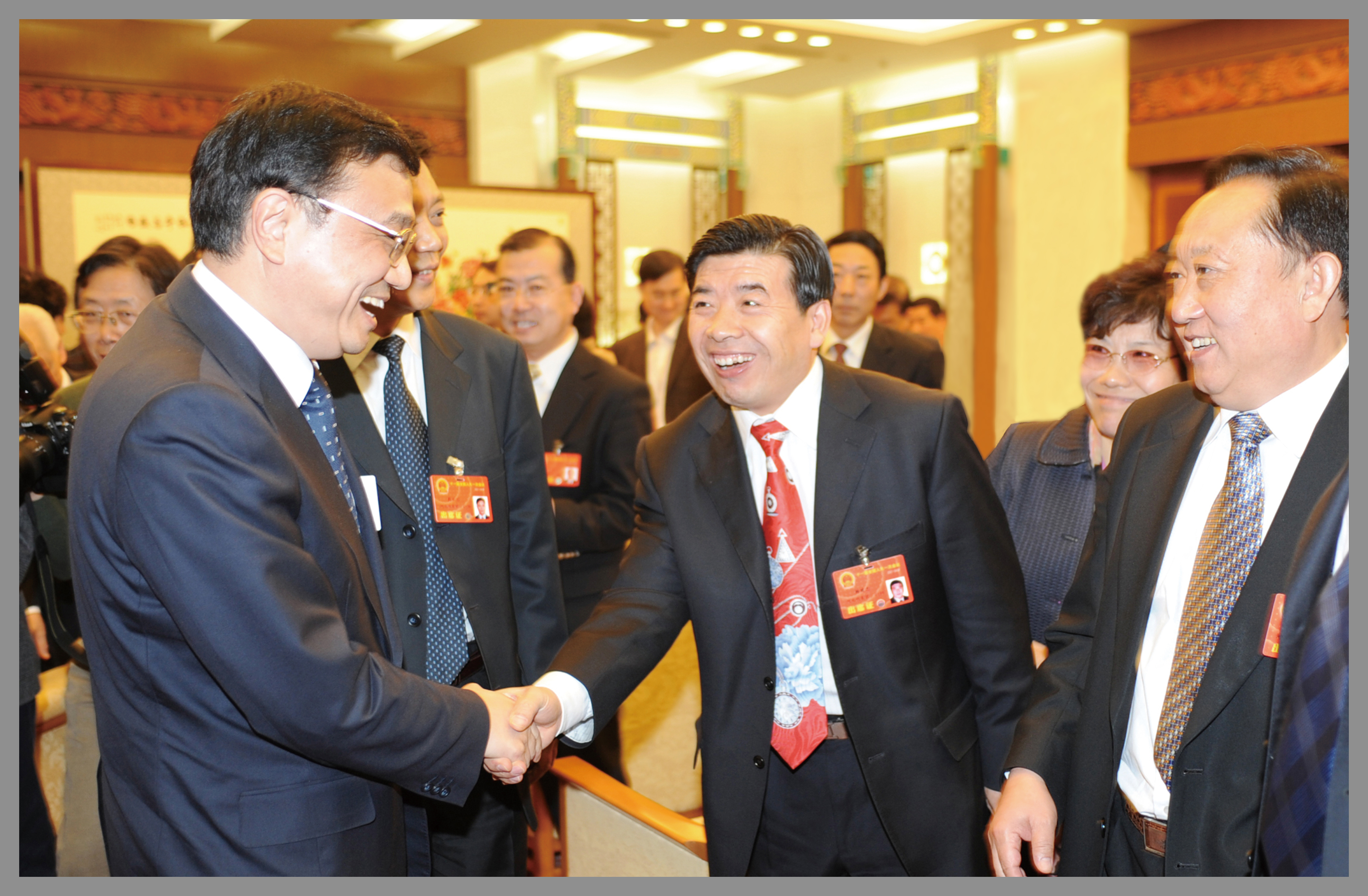 時任中央政治局常委、國務(wù)院總理溫家寶與楊建忠董事長親切握手